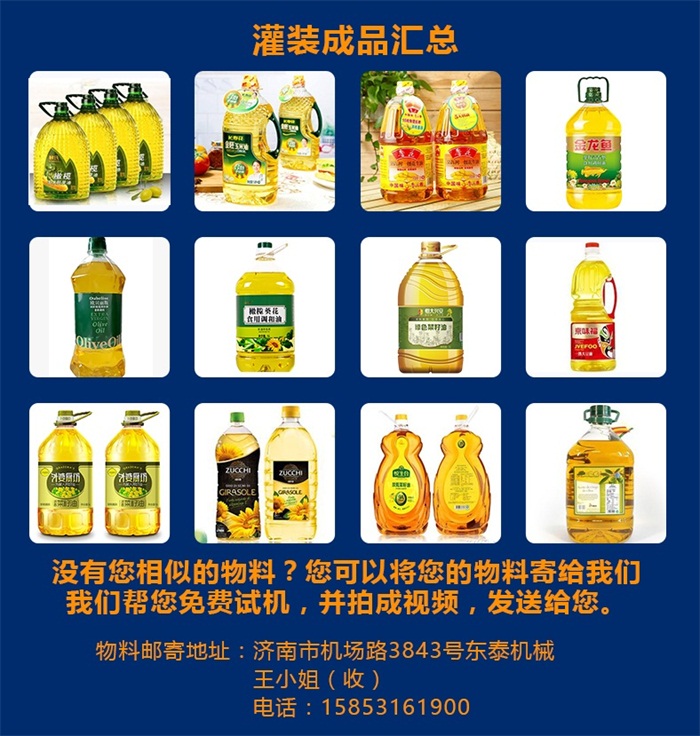 該系列食用油灌裝機采用流量計式計量灌裝原理,多項認證,適用于各種規格(1-5升)的南瓜籽油、榛子油、牡丹籽油、芝麻油、核桃油、山茶油、亞麻籽油、棉籽油、橄欖油、大豆油、玉米油、菜籽油等食用油灌裝。這款食用油采用高精的旋轉編碼器計量,保證了1%o的灌裝精度,在保證灌裝精度的同時,提高了20%-35%的灌裝速度,操作簡單,維護方便,節省人工成本,生產效率更高。除了組,無進桶時間,6頭灌裝機,變頻器在25赫茲的情況下,每組灌裝時間為16秒,1350桶/小時;